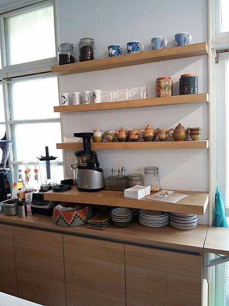 櫃子有陶製的茶壺茶杯,喜歡那種樸實的感覺。