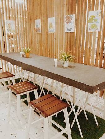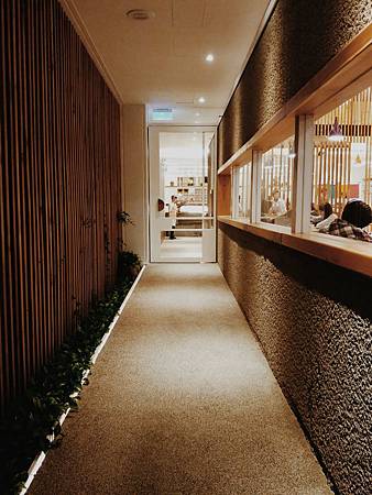 有長長的走道帶領你走進這個充滿清新食感的地方。建築上的巧思其實是有的。