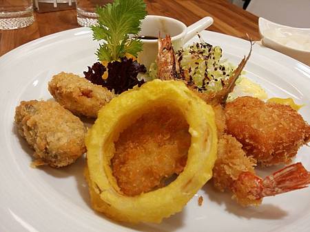 蝦子滿甜的,重點是洋蔥圈非常新鮮,炸蚵仔也非常飽滿。